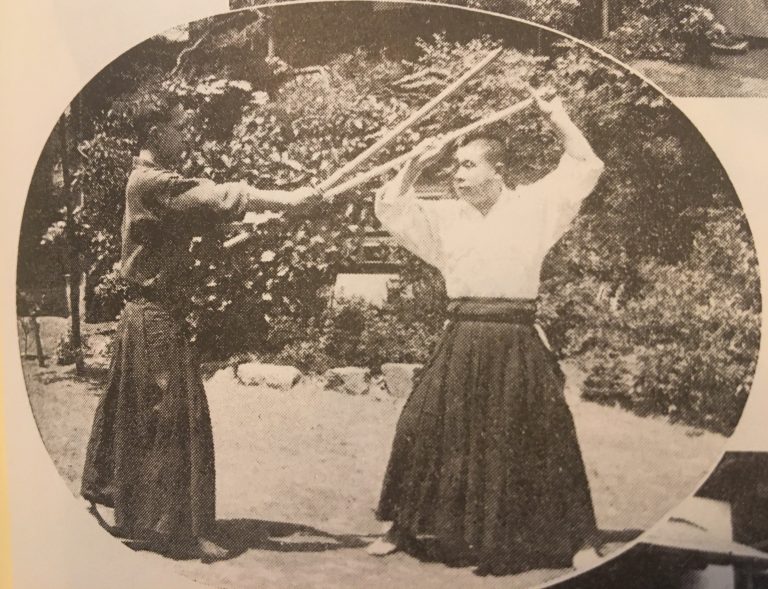 It would be impossible to exaggerate the importance of Shimizu Takaji Sensei in popularizing Shindo Muso ryu. The essence of his story is that he receives Menkyo kaiden in his early 20s, moves to Tokyo in 1930 with encouragement from Kano Jigoro, Nakayama Hakudo, and Suenaga Misao. In Tokyo, he teaches jodo full-time, becomes an instructor at the Kodokan and is invited to train a newly formed Tokyo police riot squad. He invents the kihon–basic exercises–to simplify the teaching of the essence of Shindo Muso ryu to large numbers of students. By 1940 he has written a book on jodo, has established students in Manchukuo, and moves in circles with the most powerful political figures and martial artists of the era. He is almost single-handedly responsible for reshaping Shindo Muso ryu from an old-fashioned jutsu, into a sleek, modern “dou” (jodo) now practiced on six continents. (Mark Tankosich ably covers Shimizu’s activities in creating and spreading jodo in his article, http://www.marktankosich.com/path-zen-ken-ren-jodo-abbreviated-history-shindo-muso-ryu-advent-modern-offshoot/.)